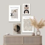 Enkel illustration af 3 fugle på en beige baggrund. En minimalistisk farveskala, der passer godt til både monokrom og farverig kunst.