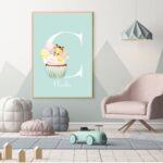 Sød personlig navneplakat, med et billede af en cupcake