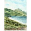 Unikt maleri skabt med fødderne, et autentisk og sanseligt kunstværk med fokus på naturens ro og bevægelse. Motivet viser en smuk bugt omgivet af grønne bakker, udført i bløde akvarelfarver. Perfekt til dig, der søger original kunst med en særlig historie og personlig dybde.