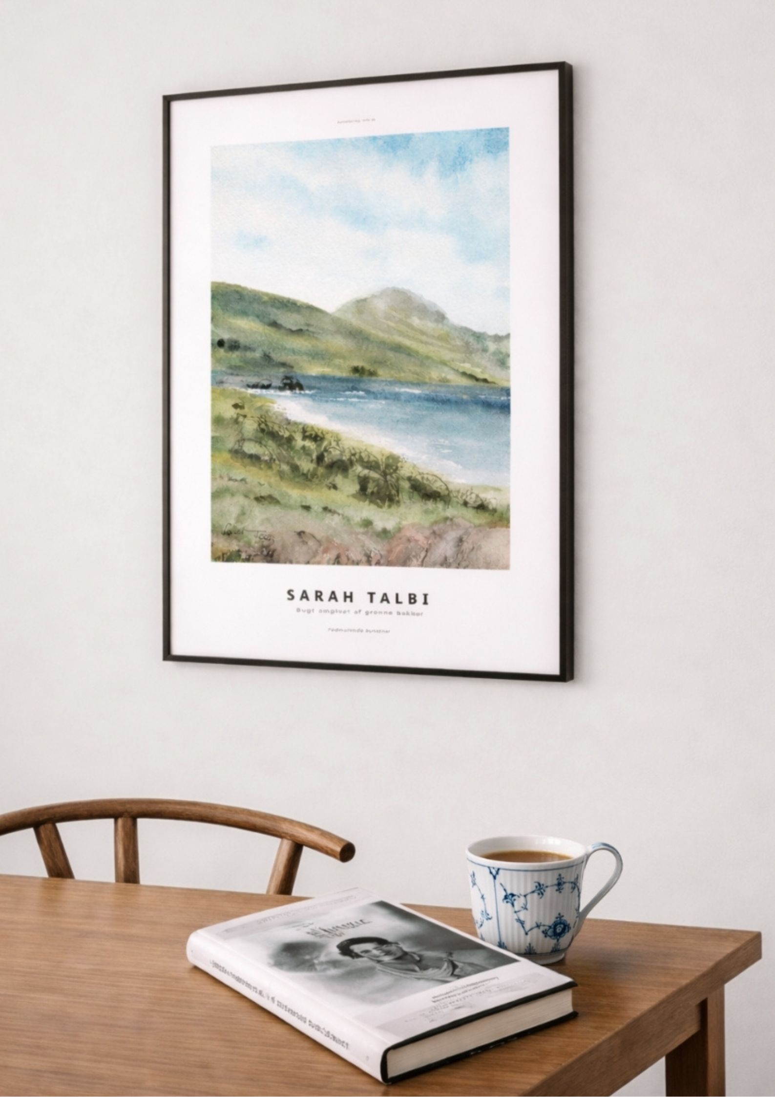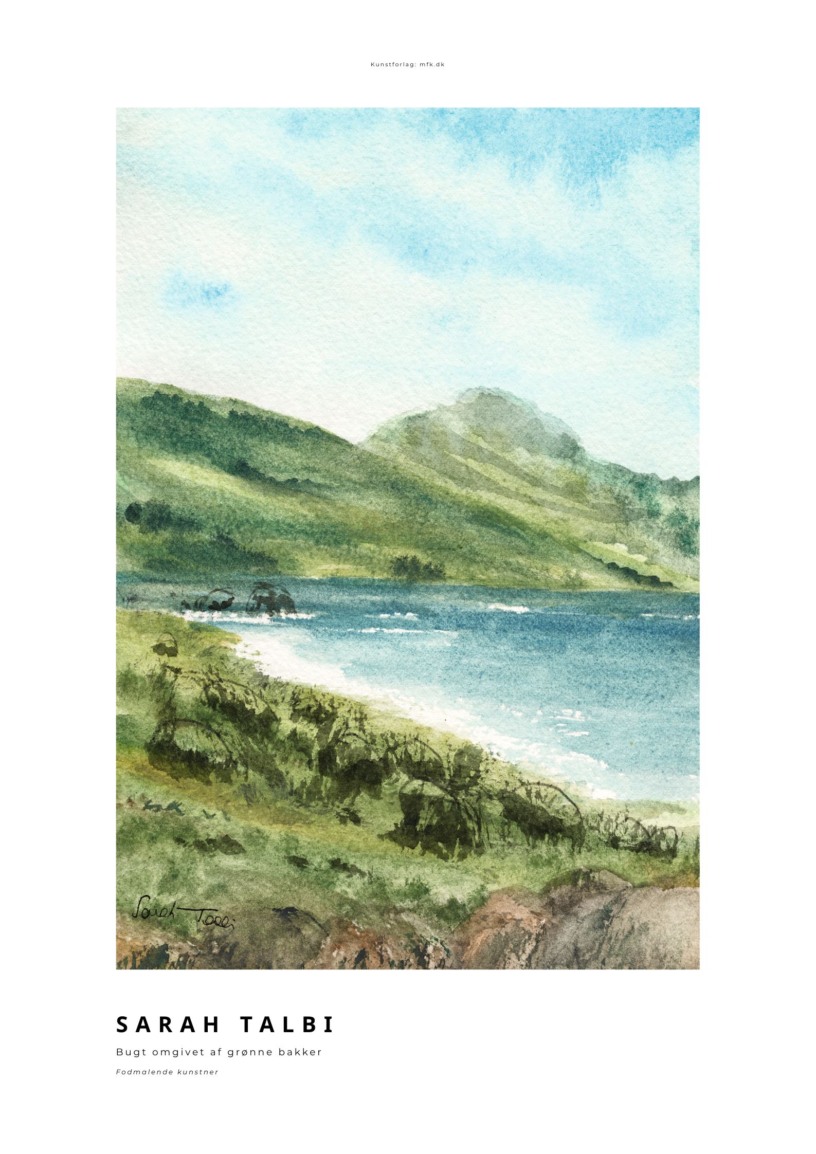 Bugt omgivet af grønne bakker plakat af Sarah Talbi