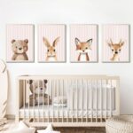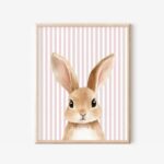 Plakat med motiv af en kanin, med en stribet rosa baggrund.