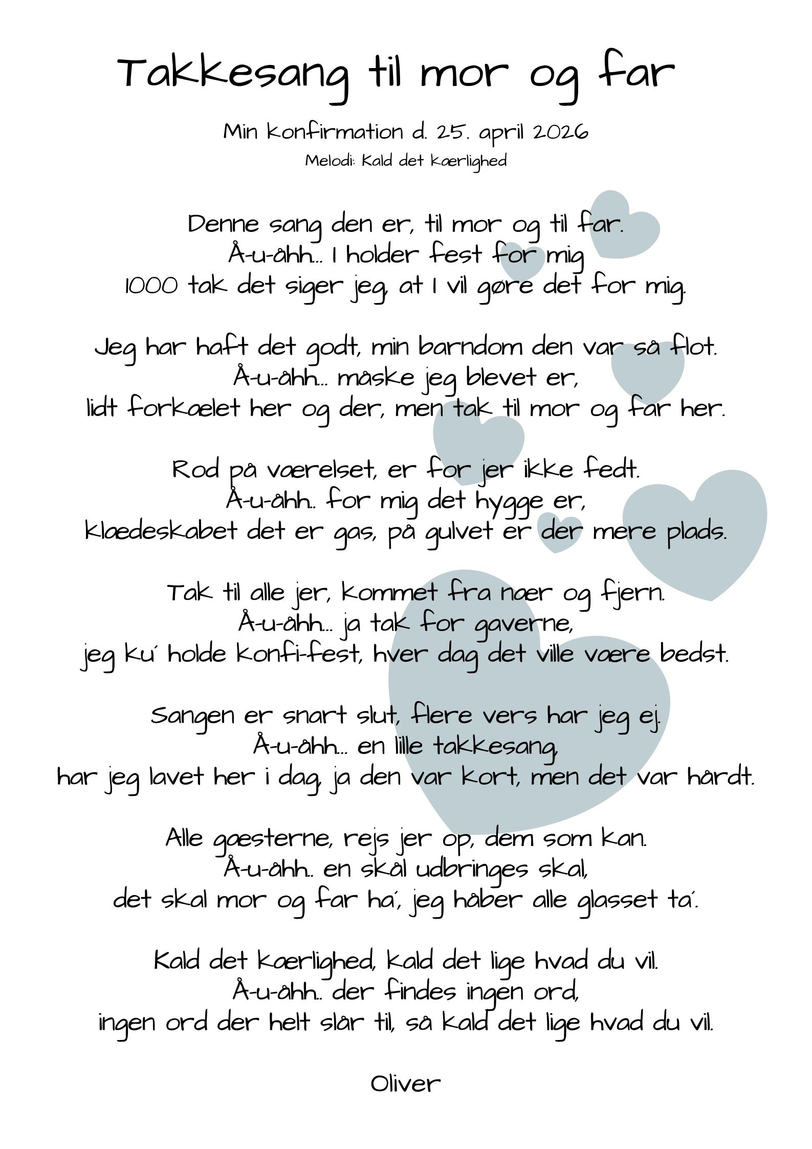 Takkesang fra konfirmanden.