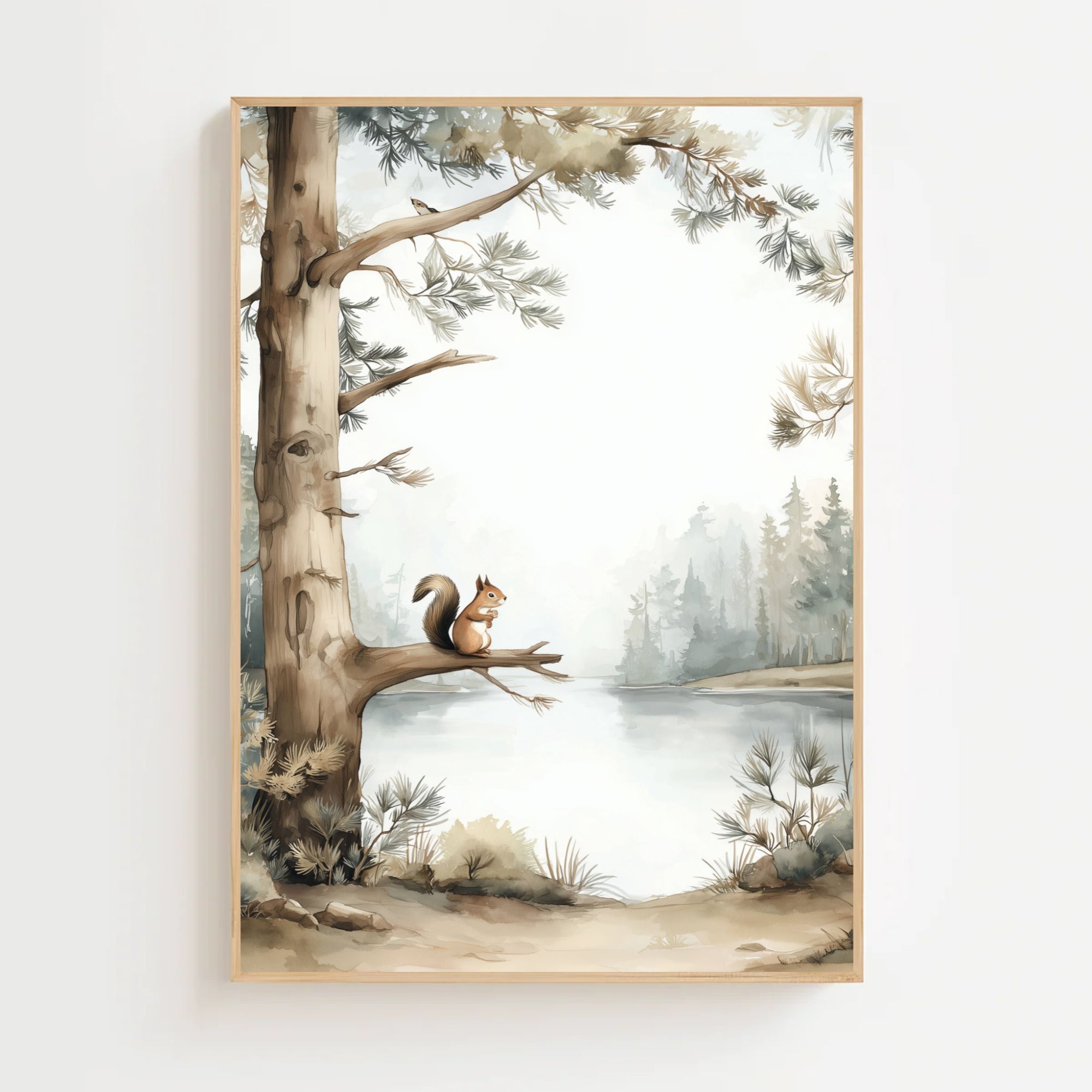 Dekorér dit børneværelse med denne plakat. Plakaten passer perfekt sammen med Bjørn i skoven og Ugle i skoven.