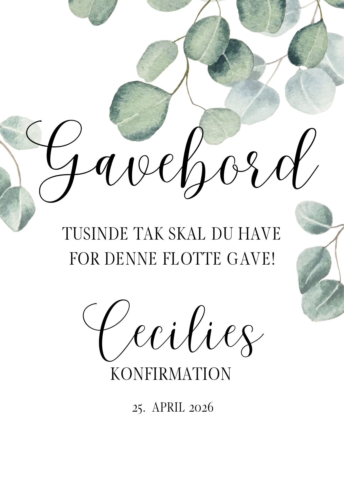Gavebordsplakat konfirmation/eucalyptus