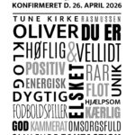 Sød og dekorativ konfirmationsplakat, med en masse søde ord, konfirmandens navn samt konfirmationsdato og kirke.