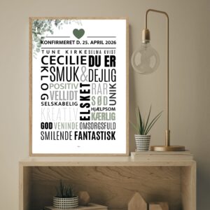 Personlig konfirmationsplakat, samt en dekorativ navneplakat – den perfekte gave til konfirmanden