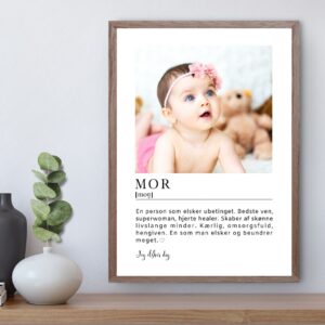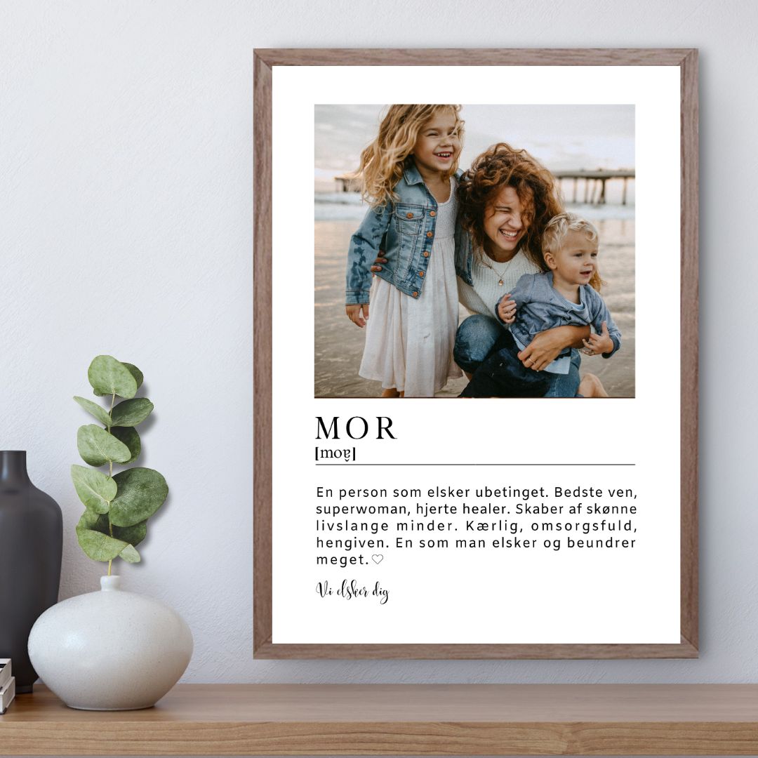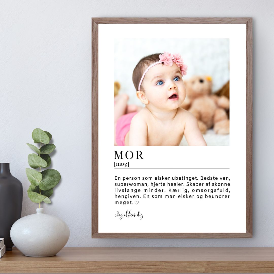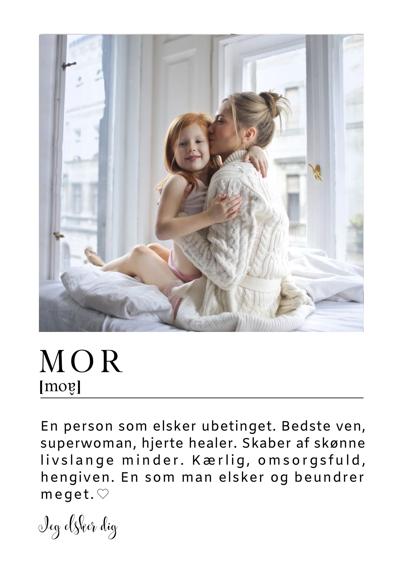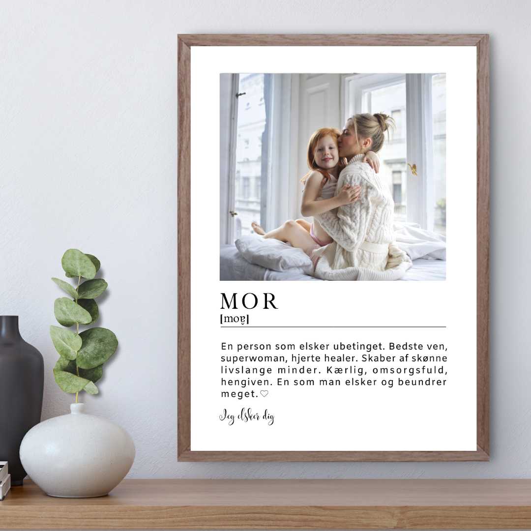 Den perfekte gave til mor, med valgfri tekst i bunden, Vi har i vores eksempel brugt teksten: Jeg elsker dig