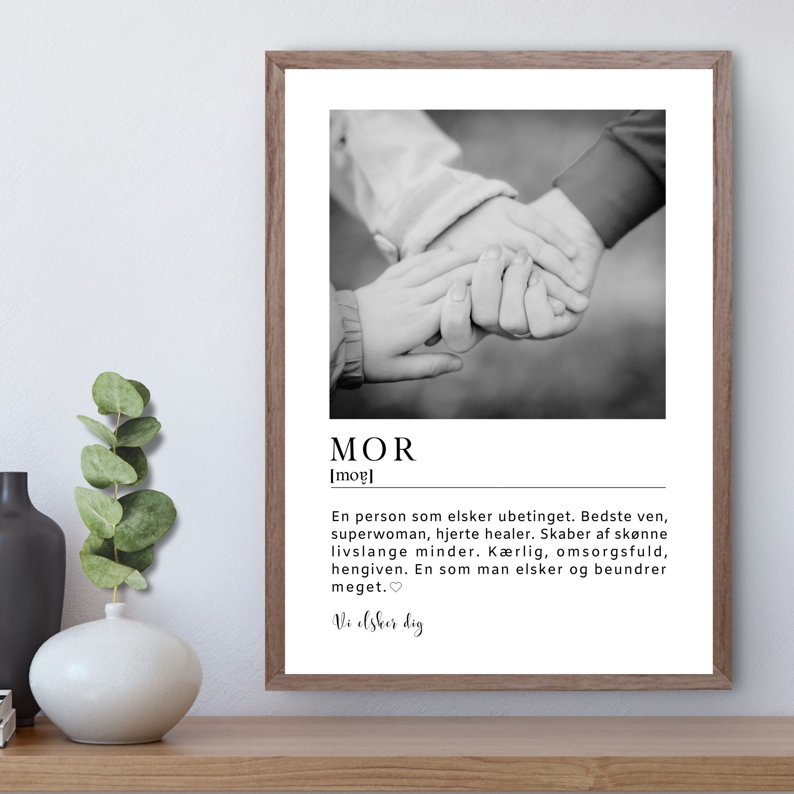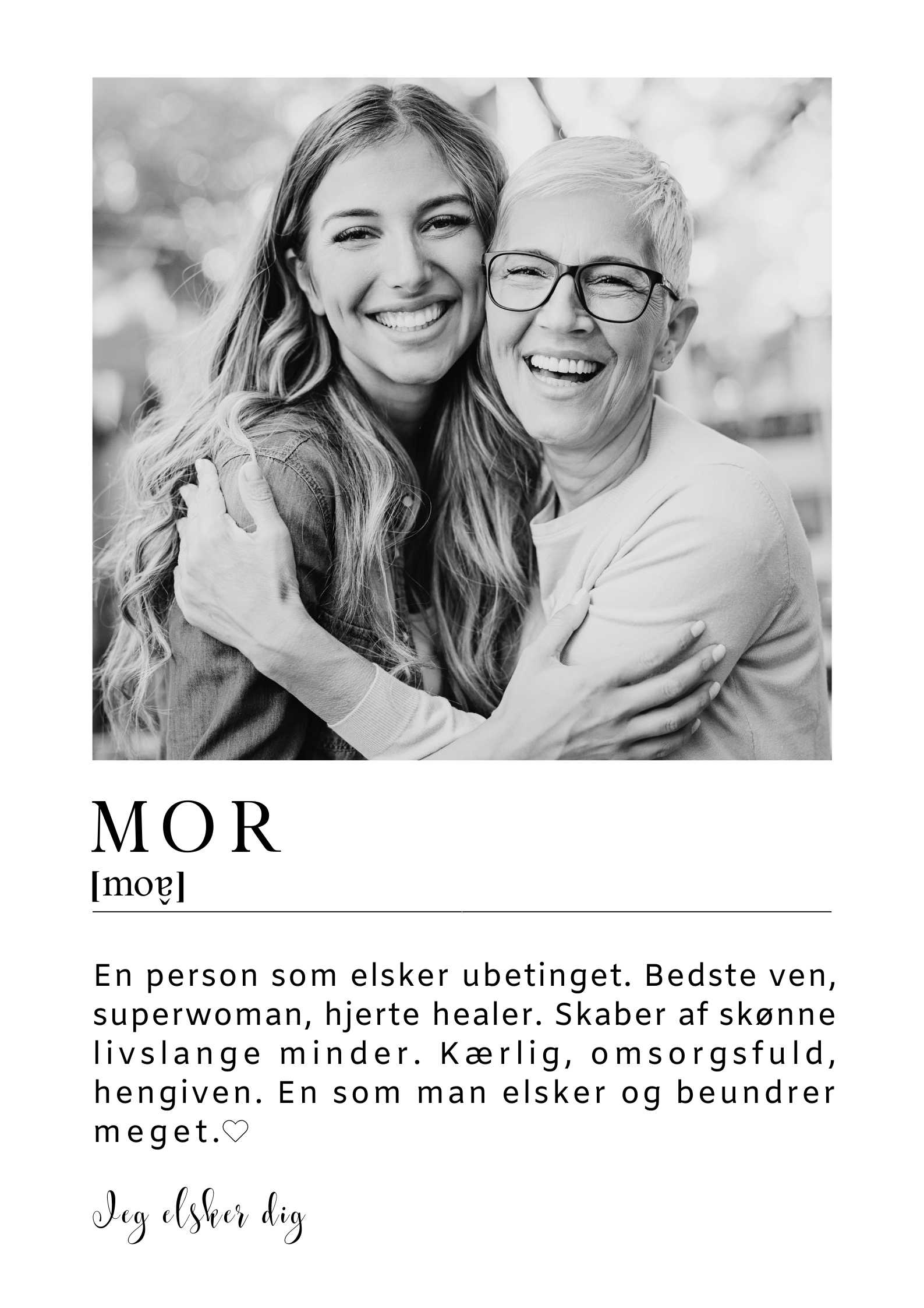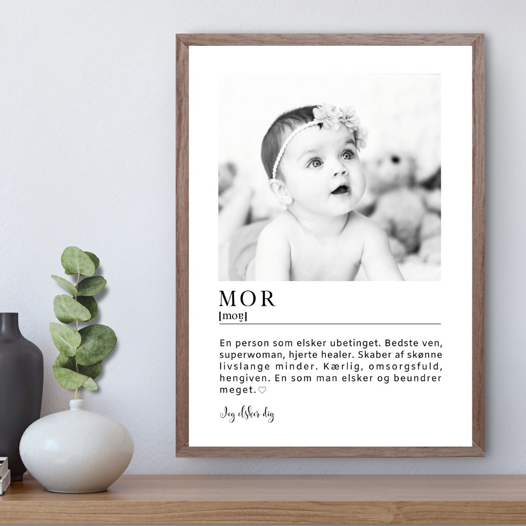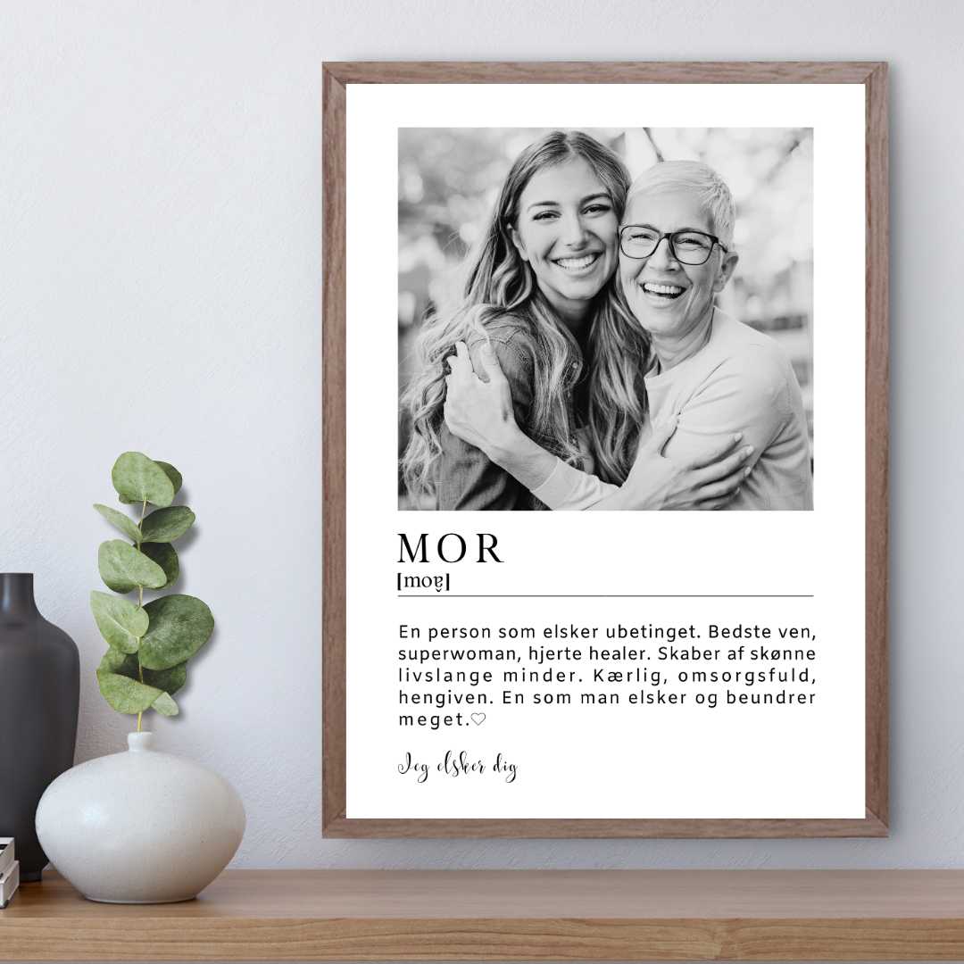 Den perfekte gave til mor, med valgfri tekst i bunden, Vi har i vores eksempel brugt teksten: Jeg elsker dig