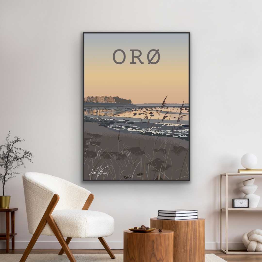 Denne stemningsfulde by plakat af Orø, er håndtegnet af illustratoren Line Klintrup på en cintiq (tegneplade), med en digital pen, hvor hun tegner direkte på tegnepladen som var det papir og blyant. Derefter trykker vi plakaten på plakatpapir i høj kvalitet.