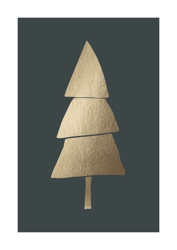 Jule eller vinter plakat med motivet af en gyldent juletræ med en grøn baggrund, trykt med en hvid rammekant.