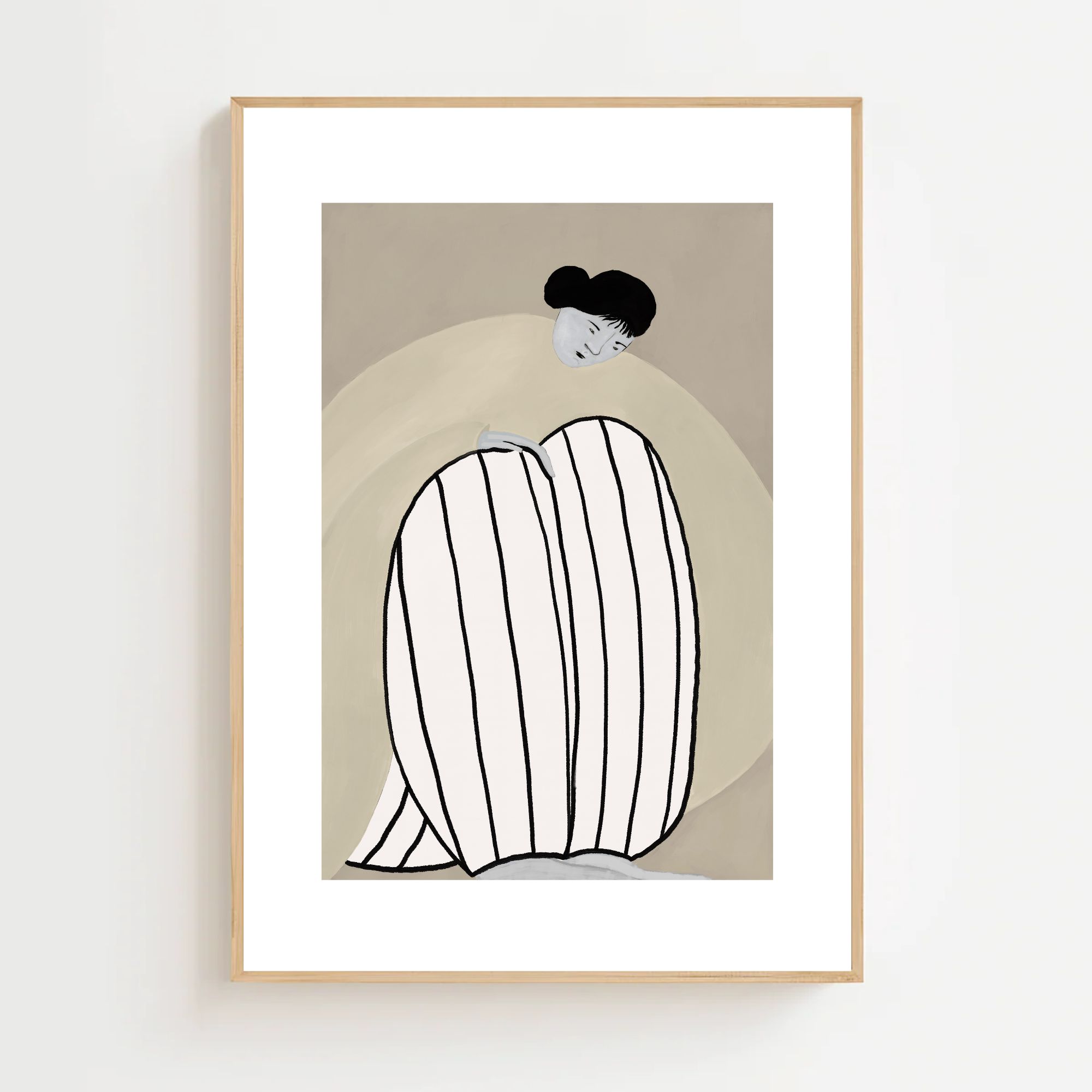 Moderne minimalistisk plakat med motiv af en kvinde i stribede bukser
