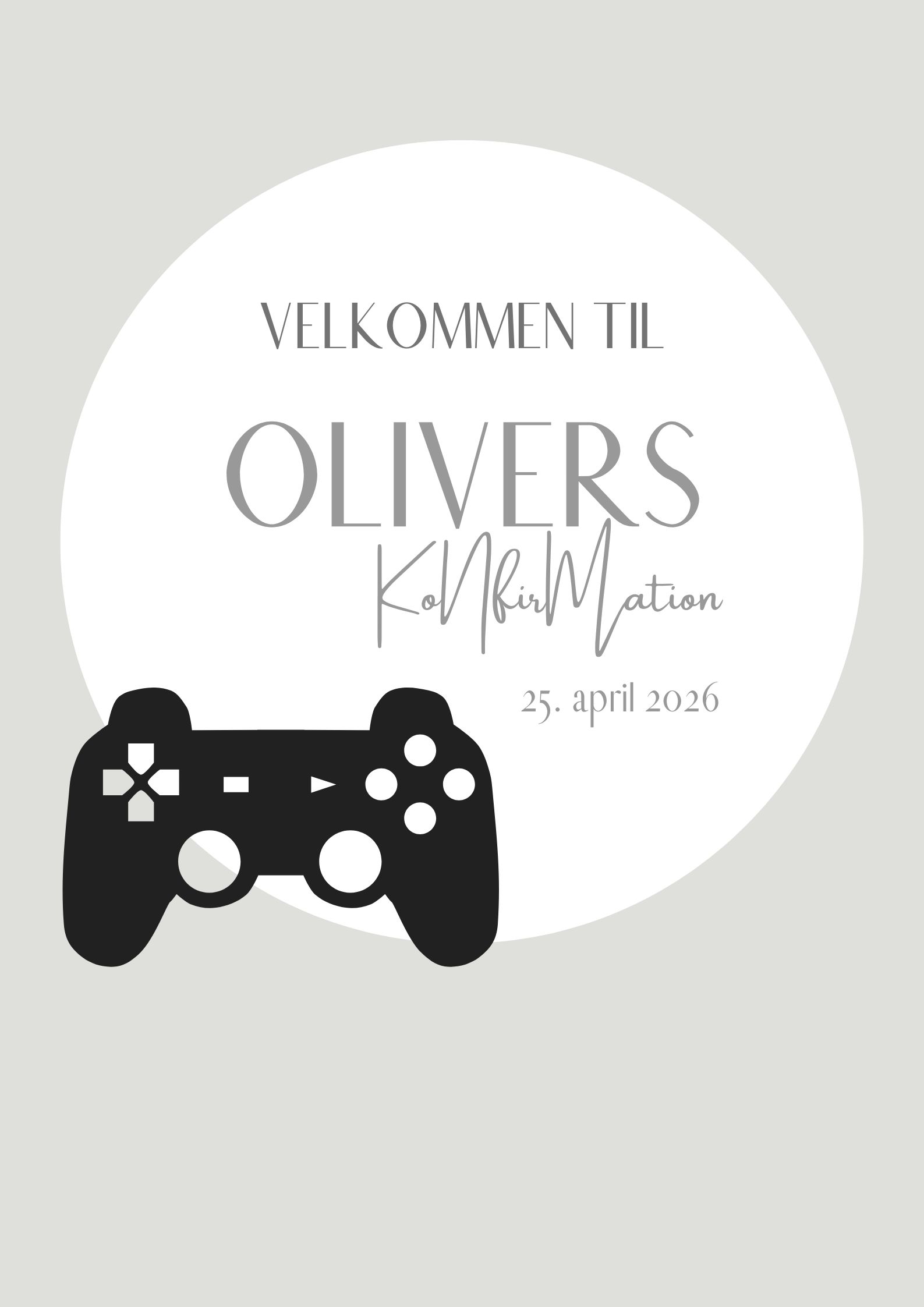 Denne plakat er i grå farver med motivet af en spillekonsol.