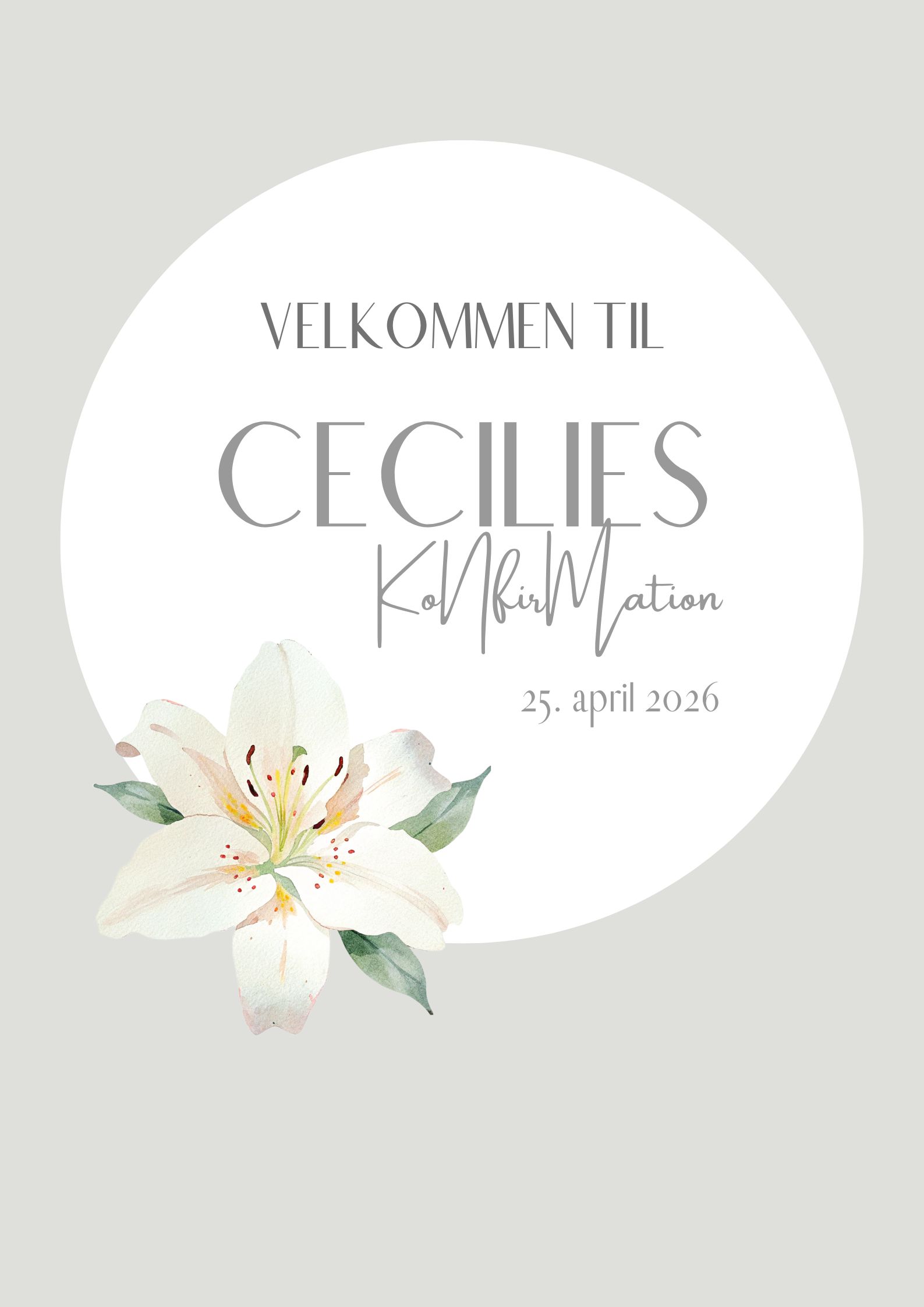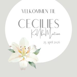Dekorativ velkomstplakat til konfirmationen, kan evt. bruges ved indgangen eller på gavebordet.