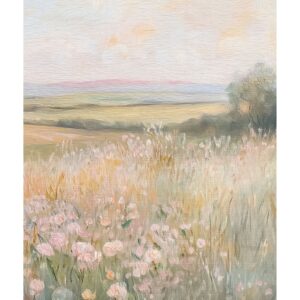 Skab en rolig og harmonisk atmosfære i dit hjem med denne smukke naturplakat. Motivet viser en blomstrende eng med vilde blomster og et åbent landskab i bløde pastelfarver, der giver et let og drømmende udtryk. De varme toner af beige, sand, grøn og lyserød skaber en naturlig balance og passer perfekt ind i en moderne, skandinavisk eller minimalistisk indretning.